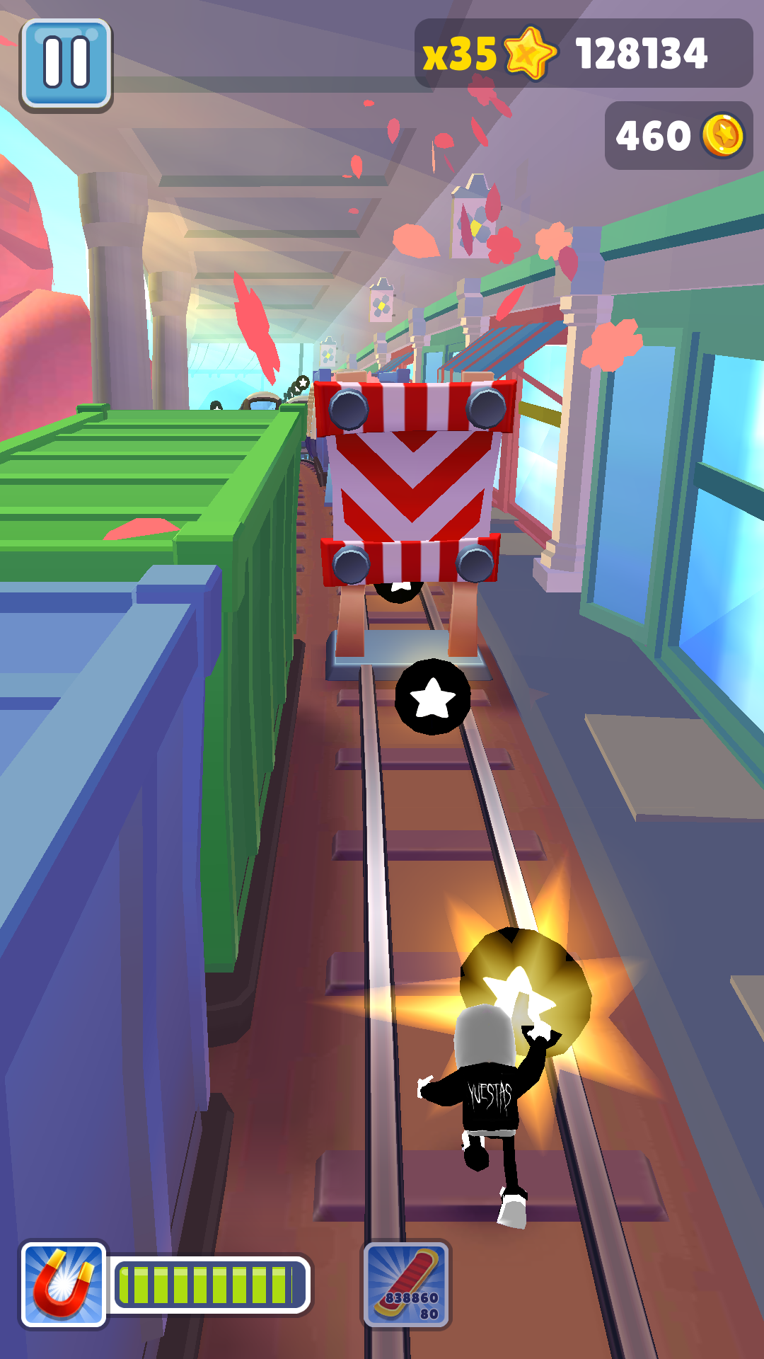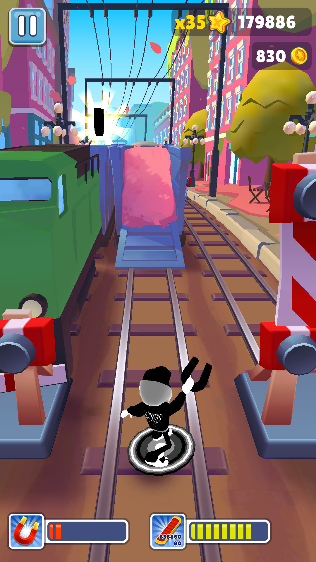 5、在行驶的路途中双击可以拥有滑板,就算撞到火车的时候也不会有什么事情;