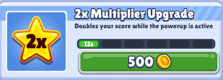 获得双倍得分(2X Multiplier)后,在道具有效时间内,每收集一个金币即可获得两倍于原先倍数的得分。