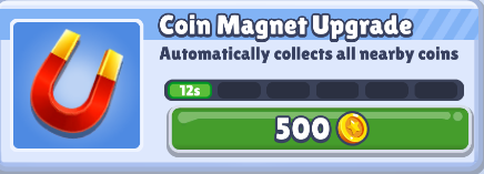 获得磁铁(Coin Magnet)后,在道具有效时间内,可以收集游戏中的所有金币。
