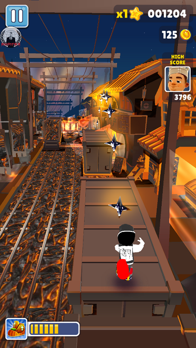 增加角色的弹跳能力,可以跳跃更高更远,在空中停滞的时间更长,不过落地时间很难掌握,使用该道具可以跳上火车,同时也可以在洞口处跳到墙上自杀。不过劝诫新手朋友不要过多使用,一时恍惚做出了错误判断就可能导致游戏结束,然而对于高玩们来说,这却是一款不折不扣的神器,凭借超级运动鞋可省去细微的费神操作,效率提升也十分明显。
