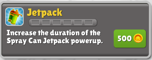 该道具是在游戏进行时随机获取的,当角色捡到火箭推进包时会自动沿着电缆飞行,不受任何障碍物的影响,同时还可获得大量的金币,此道具也是游戏中最好用、最给力的道具。