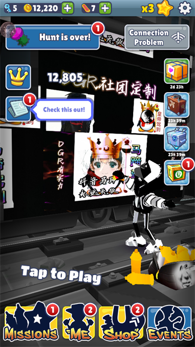 地铁跑酷万次郎版本是一款手机跑酷游戏,它把经典的跑酷玩法和日式元素结合在一起,画面变得灰白紧张,还有邪恶笑脸的金币设计,看起来挺有挑战性的。游戏里有很多角色可以选择,每个角色都有不同的属性,感觉挺有趣的。你可以通过吃掉邪恶笑脸来解锁新角色或道具,还能在各种跑道上PK,玩起来挺刺激的。