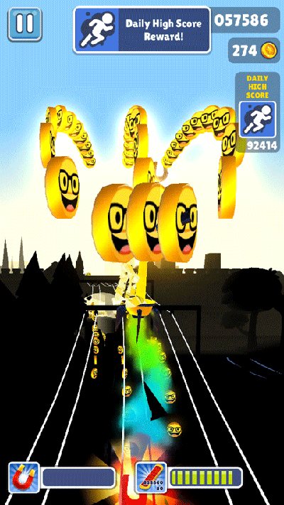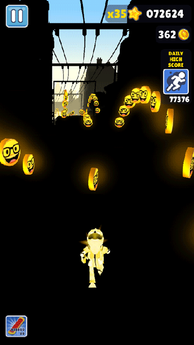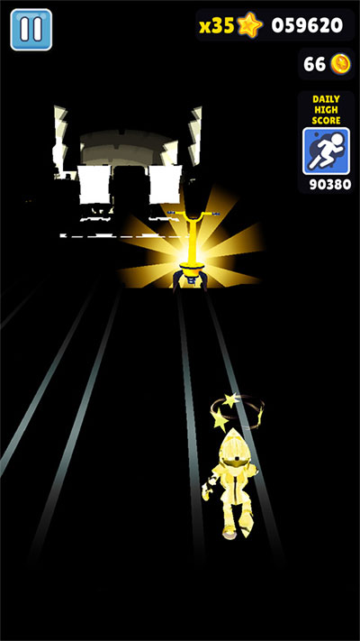 4、如果拾取到喷气背包,那就太好了,不用再继续抹黑跑酷,而是直接在空中飞行。