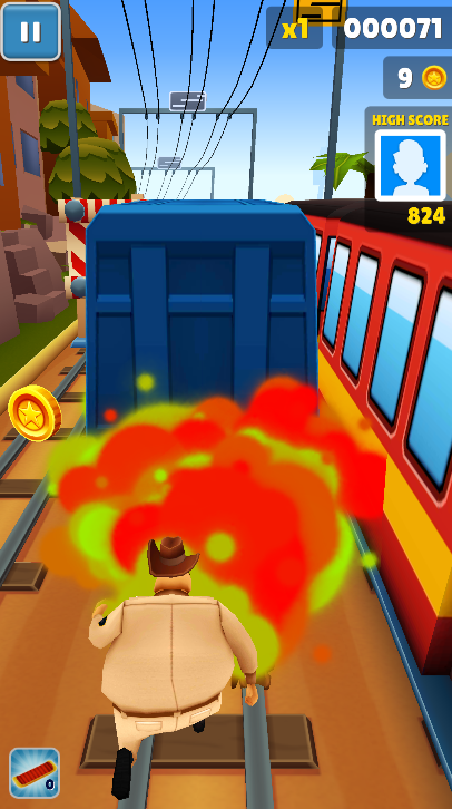 难度2星,在快碰到金币的时候左右滑,等一会儿再跳,否则会吃到金币,落下也没有关系,完成后在火车上视野开阔,更容易躲金币,还是难度不大的。