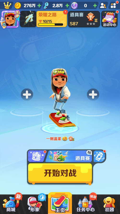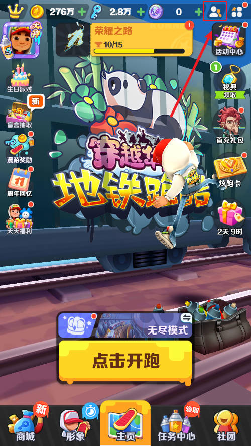 1、首先,启动地铁跑酷联机版并进入首页,点击右上角的好友图标