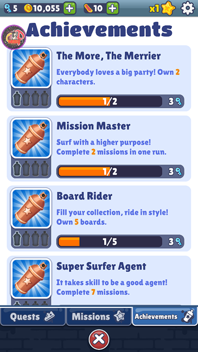 除了惊险刺激的跑酷动作和金币收集外,地铁跑酷还添加了有趣的任务系统,每天只需完成每日挑战就可获得十分丰厚的奖励,游戏中任务类型分为几大类。