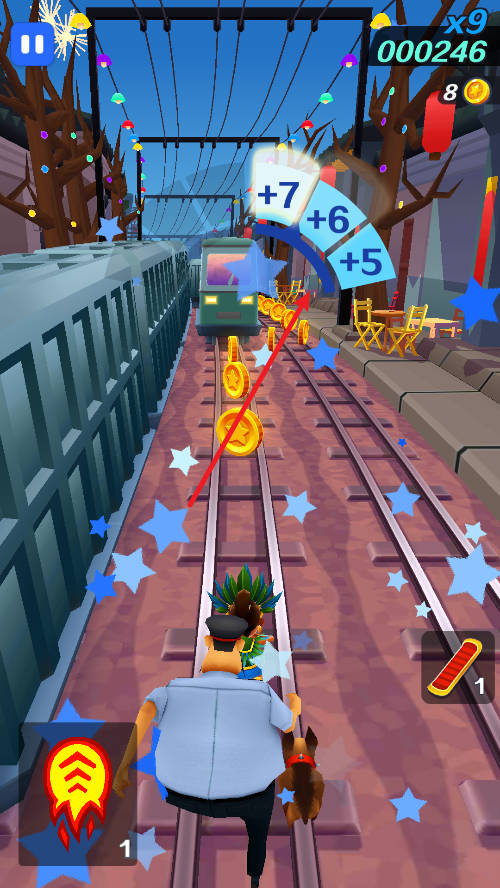 地铁跑酷11周年版是一款十分经典刺激的跑酷手游,11周年庆陪伴我们度过美好的时光。地铁跑酷中操作简单却极具挑战性,只需要滑动手指,向上、下、左、右躲避障碍,你就能不断向前冲刺。没有时间限制,也没有终点,真正考验的是玩家的操作技巧和反应速度。