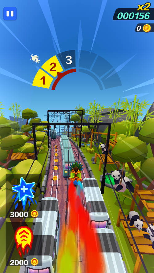 4、道具合理利用。玩家们在游戏中不仅要收集金币,扑面而来的火车也会让你累够呛,在这个过程中你可以使用道具,加速道具能够让你快速前进,使用滑板可以帮助你多出一条生命,点击屏幕两次可以使用道具。