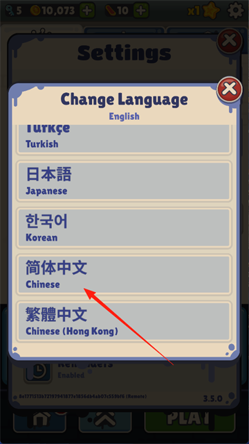 3、然后往下滑,滑到最底下可以找到简体中文选项,然后点击就好了,还可以切换其他国家的文字。