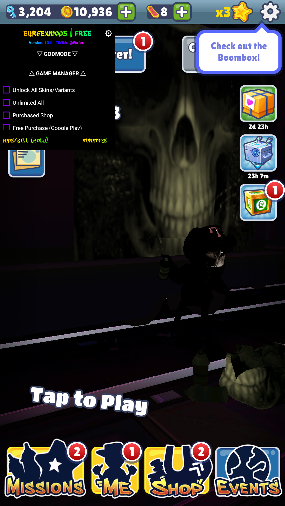 地铁跑酷亡灵之城怎么解锁内购和无限钥匙?