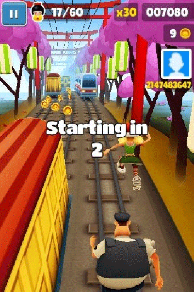 玩家经常遇到的一种情况。左右两路没有任何障碍,中路有5~6辆火车奔过来。为了能够把车上的金币吸收干净,这个时候就可以运用基础组合跳滚了,前提是不要玩得太很,稳一些较好,如果火车还没到达玩家下方,玩家就已经在半空中往下划那么就只有死翘翘了。