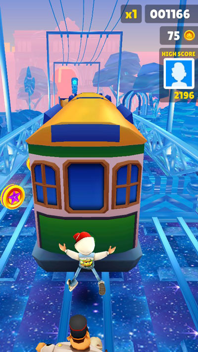 地铁跑酷星空版是由Ezrfex制作的一款地铁跑酷的续作版本,这个版本最大的特点就是跑酷者脚下的赛道变成了绚丽的星空,沿着闪烁的星空跑道奔跑,并躲避障碍、收集金币宝石以获得更高的分数,这个版本中的游戏场景到处都充满着星空元素,例如陨石、宇宙飞船和管道等,同时游戏的操作方式也很独特,玩家需要向左或向右来滑动屏幕以此控制角色的跑酷方向,上下滑动则能操作角色跳跃或者躲避障碍,操作很简单,核心玩法依然是围绕跑酷展开,但不一样的地图场景却更能带给玩家全新的乐趣,喜欢这个版本的小伙伴欢迎前来本站下载。