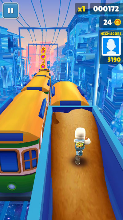 2、跳跃的距离也不是一成不变的。在上坡的路段,跳跃距离明显会短很多,下坡的路段, 跳跃距离又会长很多。所以,在这些地方躲避障碍物的时候一定要把握好起跳的距离。(PS:地铁跑酷基本上都是在平地上或者火车上,部分路段也会有起伏)