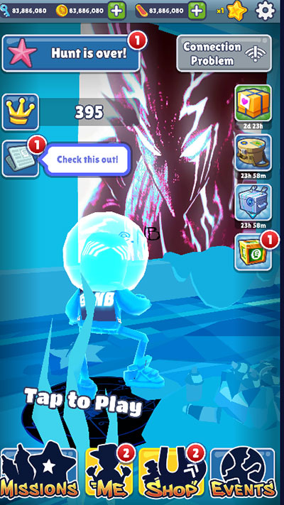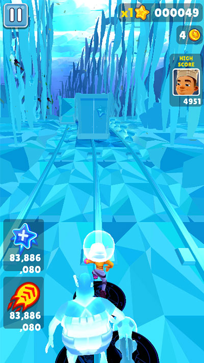 2、进入地图后,各种场景都非常的炫酷,玩家需要控制人物躲避障碍物,捡取金币和道具获得更高的积分。