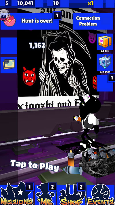 3、游戏中的道具分为主动和拾取的道具,主动道具滑板可以帮助你增加得分,还能保护你,拾取的道具有很多种,每一种都有不同功能。