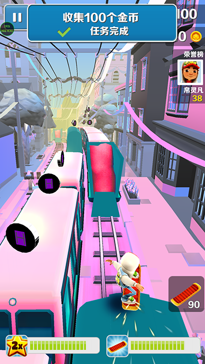 地铁跑酷星辰之城是快手UP主“星辰”制作的国际服地铁跑酷魔改版,相较于原版,此版本地图和房屋的样式变成了粉色的色调,看起来非常的梦幻,像是穿梭在童话世界,游戏中的金币修改成了紫黑色的样式,与地图十分的搭配,并且游戏中内置了一个mod菜单,可以实现无限内购、全部滑板、全部装饰、所有角色等功能。