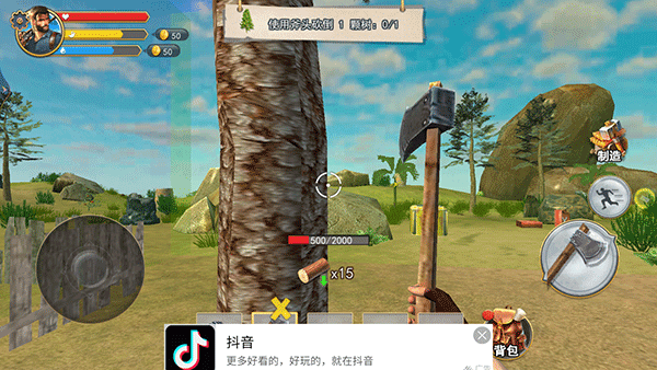 4、游戏里的树木是可以砍伐的,靠近一棵树,点击攻击键可以收集树木资源,树木血条为0时,树木会自动消失。