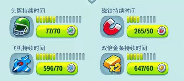 道具是游戏当中很强力的辅助工具,在游戏当中如果获得头盔的话,就可以无所畏惧,勇往直前。不过获得磁铁的话,就可以大量的吸金或者是获得飞机道具的话,就可以享受驾驶在空中的清闲时光了。