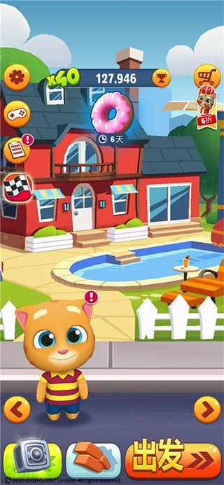小伙伴们刚进入游戏,就可以见到可爱的汤姆猫了。接下来需要建造属于汤姆猫的房子,这样就能在跑酷过程中获得翻倍的分数,玩家可以通过建造房子来解锁汉克狗跟安吉拉这些角色。