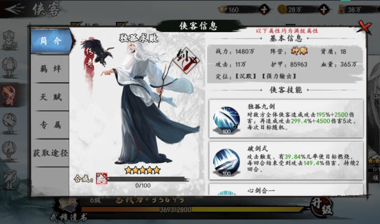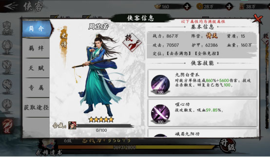 除了提升单体侠客的战力之外,还可以通过提升所有侠客的总战力,为自己的侠客提供属性加成。可以通过招募收集更多的侠客,同时适当分配资源提升其他侠客的战力,来升级武穆遗书,武穆遗书的等级越高,能够给予侠客的战力加成就越大。