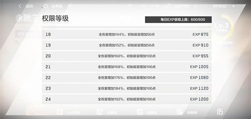 永驰王座副本并非使用通关章节制度,而是单独使用了“权限等级”作为章节解锁的条件,玩家在通过小章节时会获得权限经验,永驰王座总共5个大章节,需要依次提升5权限个等级才能解锁一下章节,权限等级会获得BUFF强化,每日等级经验获取有上限。