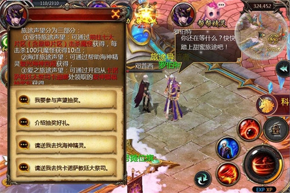 等级达到50级的神选者积攒3段旅途的声望即可在旅途导航者罗伯特处进行甜蜜抽奖。每获得10点声望即可抽奖1次,声望次日清空。