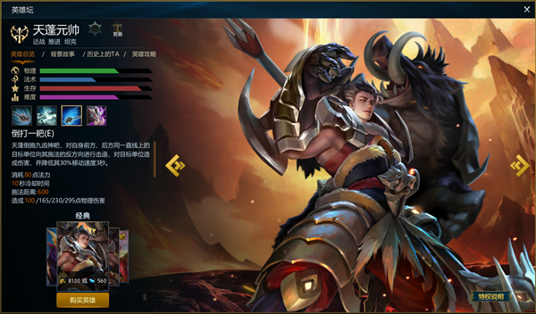 考虑到新手普遍都是黄金钻石段位的玩家,天蓬元帅是一个极为合理的选择,猪八戒的控制多,前期没有大招的情况下他的生存能力是诟病而且近身敌方也是一个问题,但和射手一起走,控制多的他可以让敌方很难出塔,1技能的释放距离长,敌方不注意很容易就会被控住,一旦被1技能控住猪八戒的4技能拉进和眩晕就会接踵而至,在加上旁边还有射手在输出,敌方上单不死也要脱层皮,在前期团战猪八戒的控制技能效果仍然可以起到重要作用,所以前期他在下路是极为合理的选择!