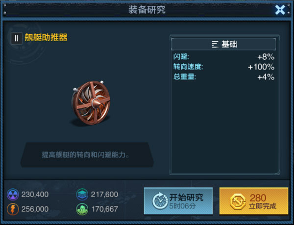 装置在船体上的优化主要在于动力加速、闪避加成、转向加速等船体优化