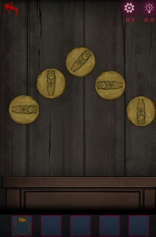 18、将铜环装到牛鼻子上,获得【铜印】,铜印在右边的抽屉上使用,打开机关,机关上每个颜色对应一个符号,将机关调整到下图位置,获得【龙纹盘】。