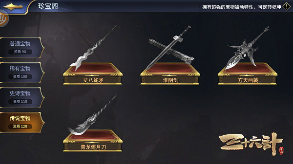 除了这些传说级宝物,历史上颇具传奇色彩的各类兵器、饰物、兵书等也以“宝物”的形式在游戏中等待各位主公发掘。传国玉玺、青釭剑、平辽遗策等,这些在历史上亦是威名赫赫的珍宝在游戏中又会怎样大放异彩?就请各位主公大展手脚去亲自探索吧~