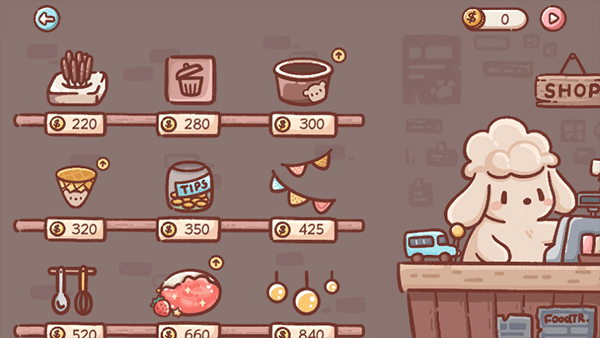 用销售冰淇淋赚到的钱,从我们友好的绵羊店老板那里购买新的、更好的冰淇淋设备。您可以获得新的冰淇淋配料,如樱桃、百奇棒和巧克力威化饼干,升级冰淇淋口味,并获得全新的抹茶制作机!
