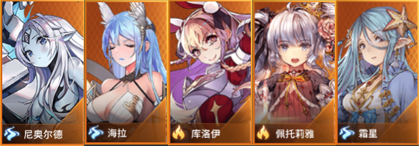 尼奥尔德(核心输出)+海拉+霜星+库洛伊+但丁