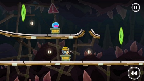 将第一场景调成拿矿镐的鼹鼠,第二场景调成断开的轨道点击开始按钮。