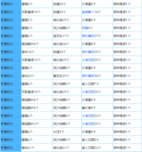 下面给大家提供的是概率较高的梦魇药水配方大全。
