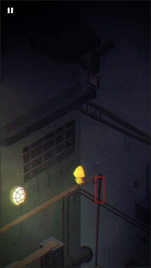 1、游戏的开始就是摩诺用门抵挡外面的攻击,第一关,摩诺在一个类似篮子的地方,需要按住上面的拉杆让自己落到地面上。
