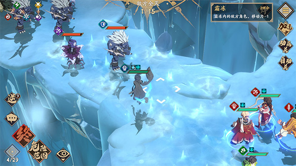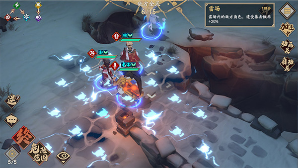 不难看出,这是冰属性的地势了,处于霜冻内的敌方角色,会有减缓移动速度的效果,大概会削弱一吧!
