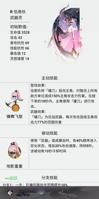 五三玖:镰刀妹,前期的不二选择,真的很给力,后面看个人搭配可以替换或继续使用