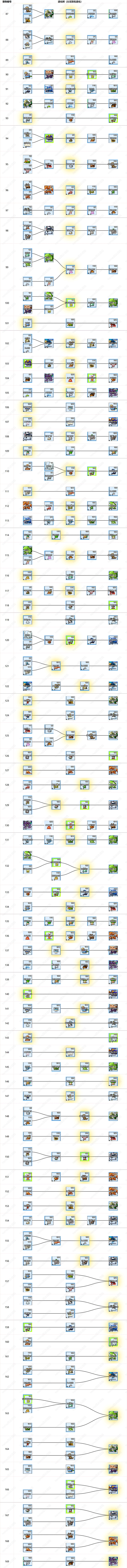 -表格右边列是进化树,包括退化前两级和进化后两级,编号宠是周围有金色光芒的那个图标。部分宠是没有进化型和退化型的。