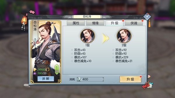 升级后可提高当前侠影的属性。