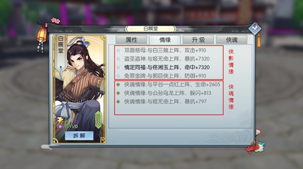 情缘属性将对角色进行额外加成。