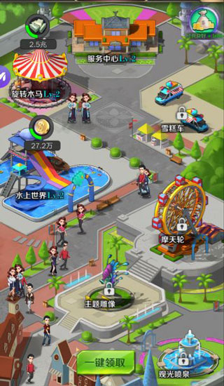 设施盈利的收益,需要接待能力和客流量成正比,并不是单纯的客流量越多越好。大多数玩家都是会遇到人流拥挤的情况,这时那么就要升级主题雕像来提高接待能力,或者服务中心里的服务人员派遣一个经营能力高的人才提高接待能力。