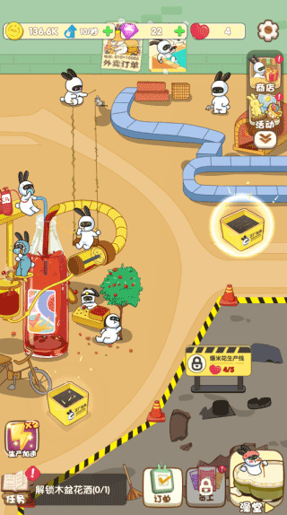 游戏玩法简单有趣,从澡堂起步,通过完成任务提升设备,制作特色菜品,满足订单需求并赚钱。当达到一定等级后还能开启名厨模式,用三种不同食材组合出高价值的招牌菜,解锁更多兔子角色。