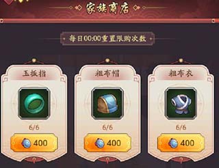 家族商店是获取到升阶材料的好地方,每天家族商店都会刷新一批升阶材料,供东家们兑换,而兑换升阶材料需要消耗一定数量的家族贡献。