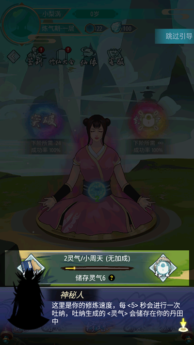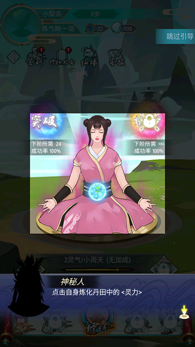 3、点击丹田注入灵气,提升修为;