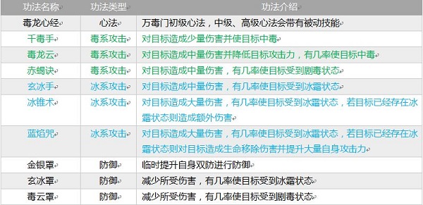 背景介绍:曾经是百草门中七大堂之一的药毒堂,后因理念不同而自成一家。门内既出过以毒医天下的圣人,也出过以阴毒之法祸苍生的魔头,行事亦正亦邪,飘忽不定。万毒门善使冰系与毒系的术法,对手往往在其冰霜之气及剧毒之息下慢慢走向败亡。