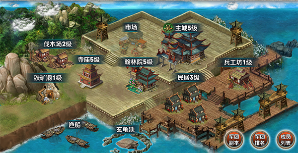 (吴国军团鸟瞰图,专属功能建筑玄龟池)