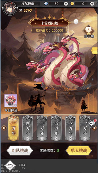 玩法介绍:分单人挑战和组队挑战,可以一个人或者和其他玩家一起挑战BOSS,打赢BOSS后获得奖励