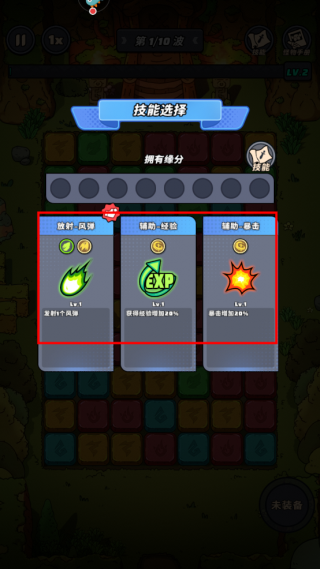 3、当消除的方块达到一定数量时,会开启技能选择;