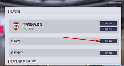 3、第三步:右侧菜单中选中“用户设置”即可找到兑换码输入处。