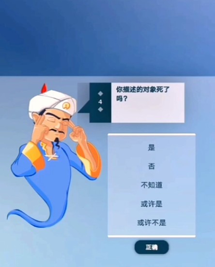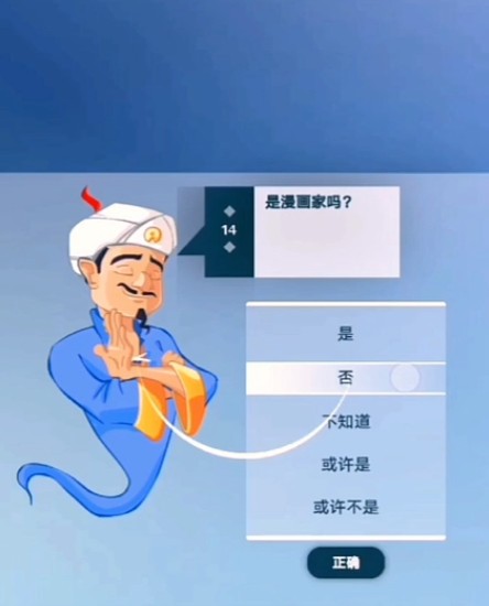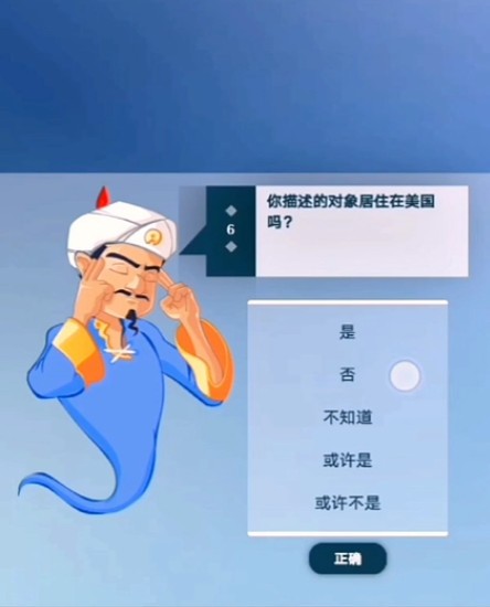 1、在心中默念一个真实或者虚拟的名人!然后如实回答Akinator灯神的问题!